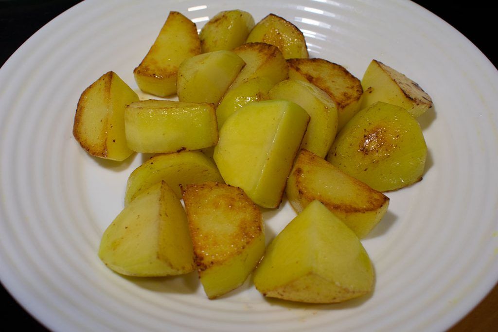 - Tres patatas medianas cortadas en cuadradas