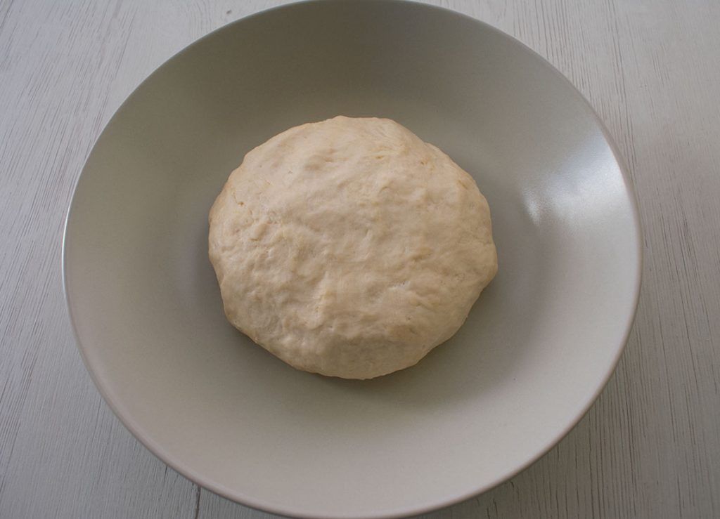 4. Amasamos formando una bola de masa blanda. En este proceso ponemos un poco de aceite en la palma de la mano como ayuda.