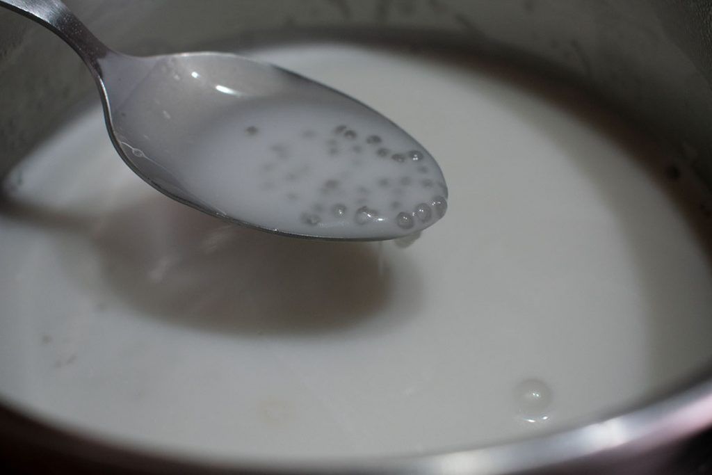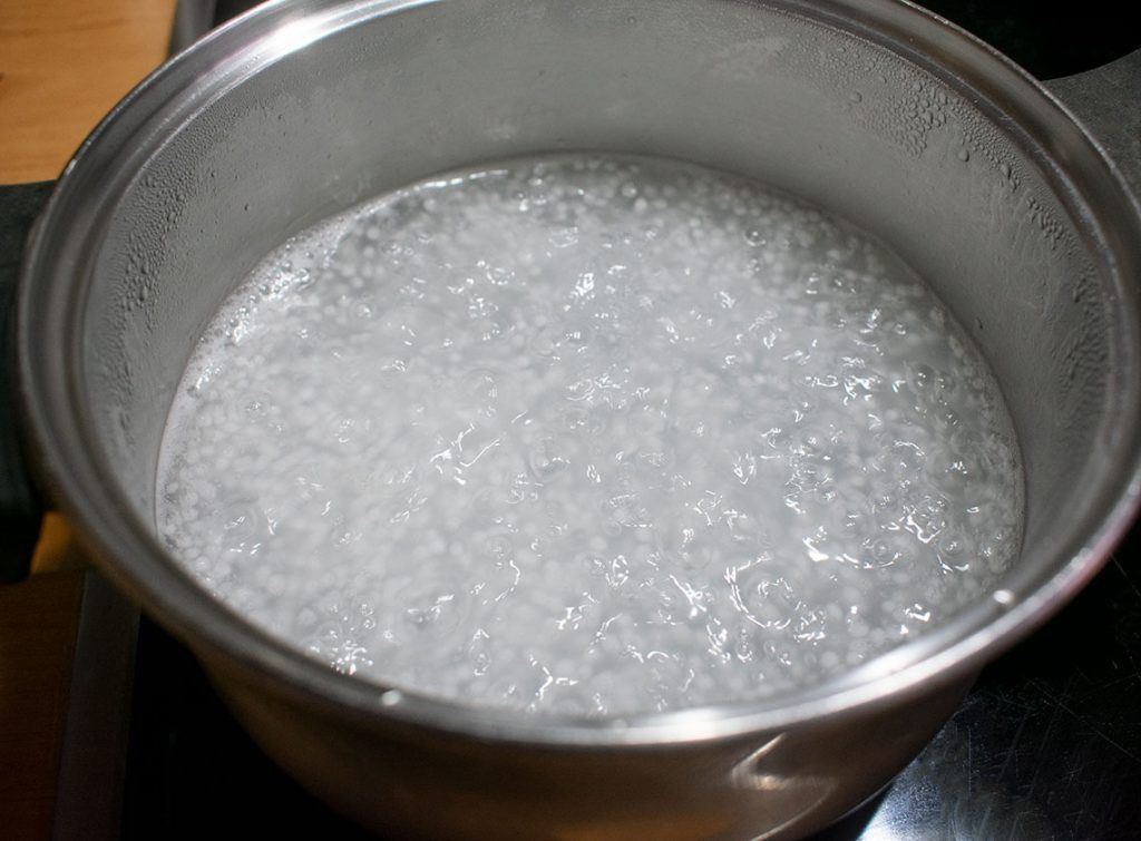 -Ponemos otra olla con 500ml de agua al fuego. Cuando empiecen a hervir añadimos las perlas de tapioca.