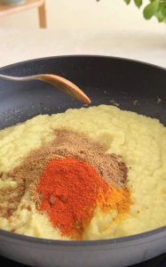 -Añadimos todas las especias en polvo y sofreímos todo junto durante unos minutos hasta que el aceite se separe de las especias.