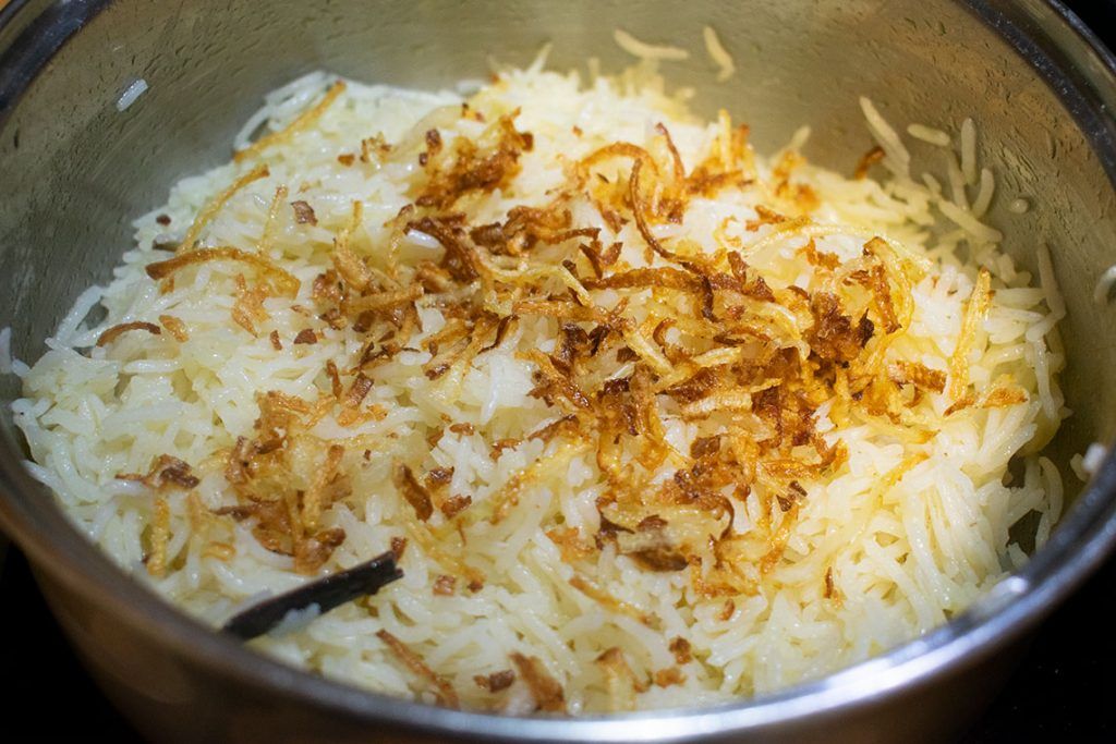 -Add Beresta (fried onion) and put the lid back on. Let it rest for another 5 minutes. Now we have delicious aromatic rice ready to accompany any curry dish.