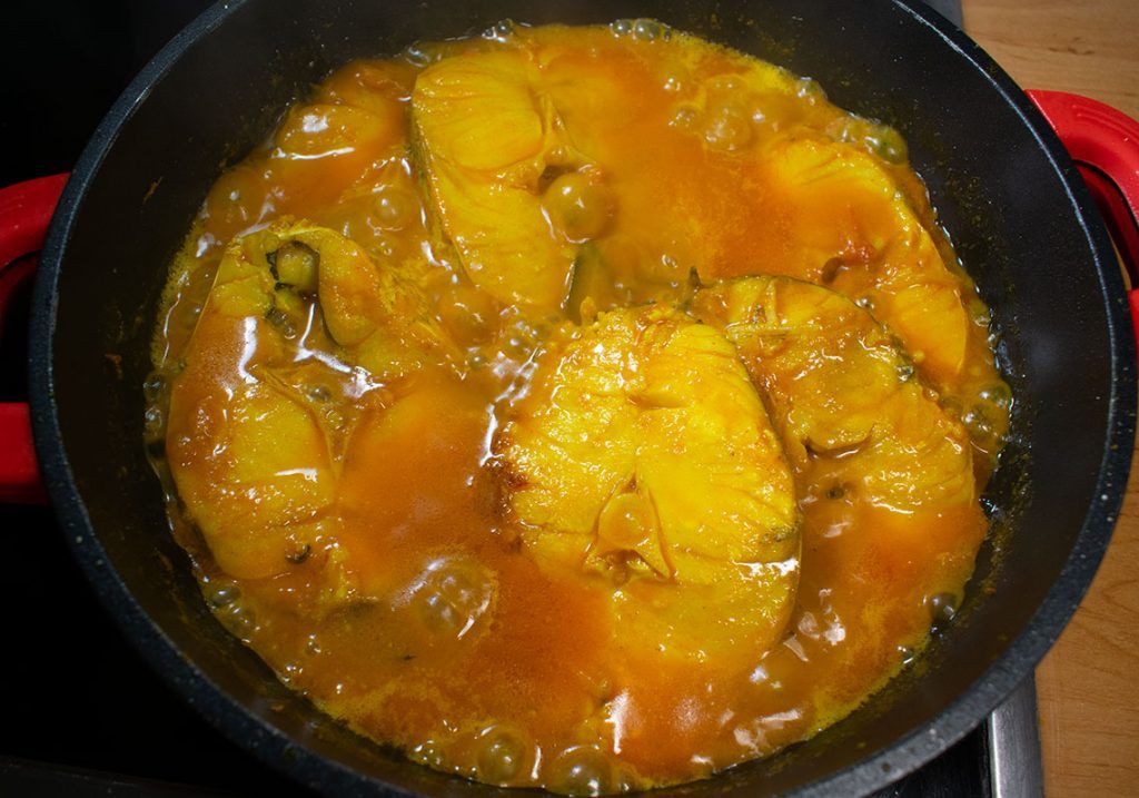Today I bring you a fish recipe that my mother usually prepares, although she usually adds more spices. I have used hake fish, but you can use another variety of fish that you like. Traditionally In our country, the fish marinated in turmeric and salt and deep-fried before adding to the curry. But they are river fish with a different texture. As I am going to cook white sea fish, in this case, I have not fried them before adding them to the curry to maintain the texture.