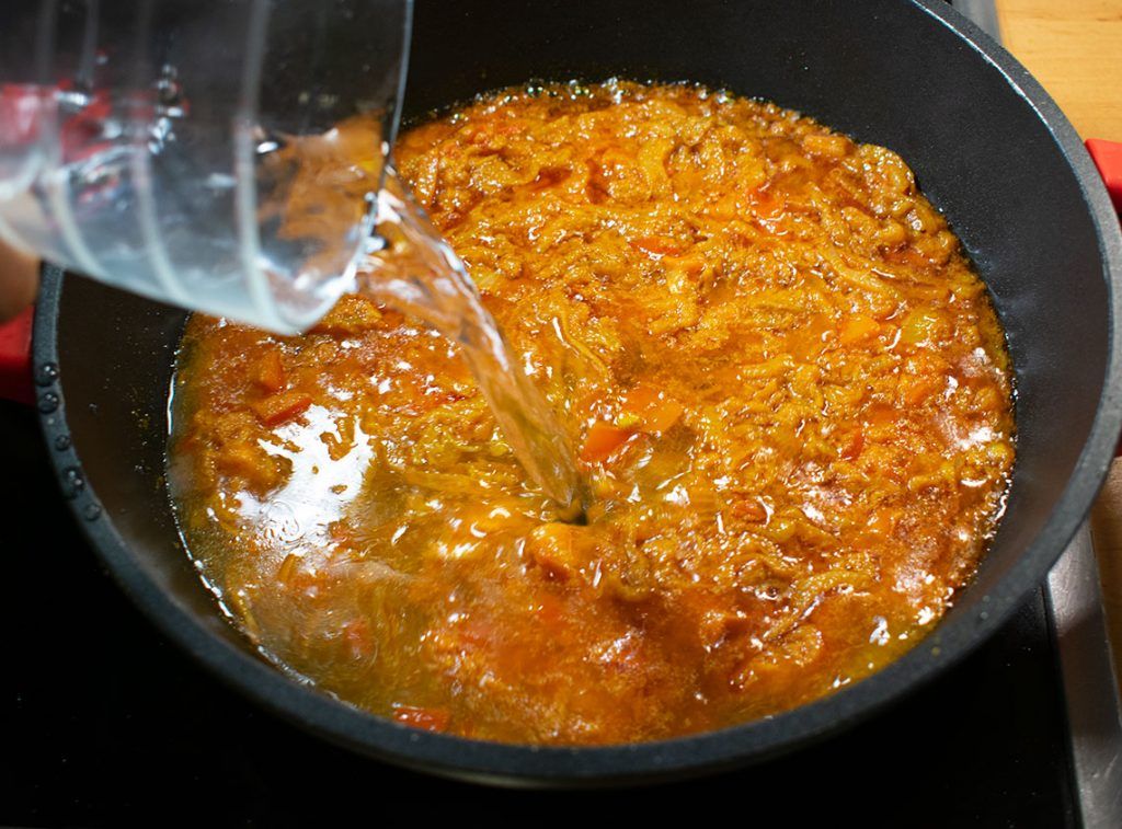 - Add one and half a cup of water or fish stock.