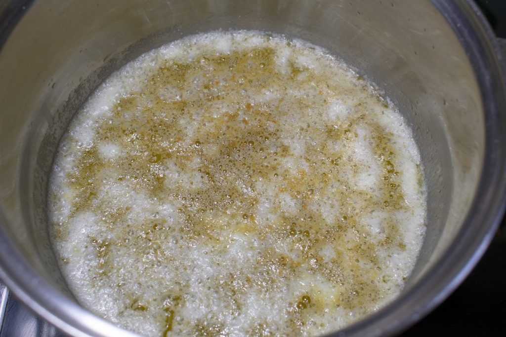 - La mantequilla empezará a fundirse y al cabo de un rato veremos una espuma blanca en la superficie. Es muy importante no remover la mantequilla durante todo el proceso.
