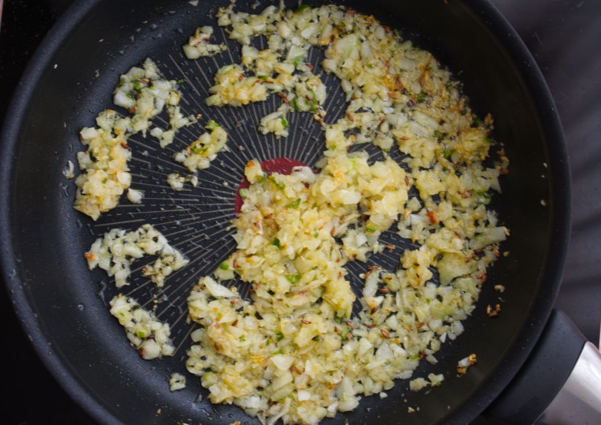 Sofrito de cebolla, chile, comino
